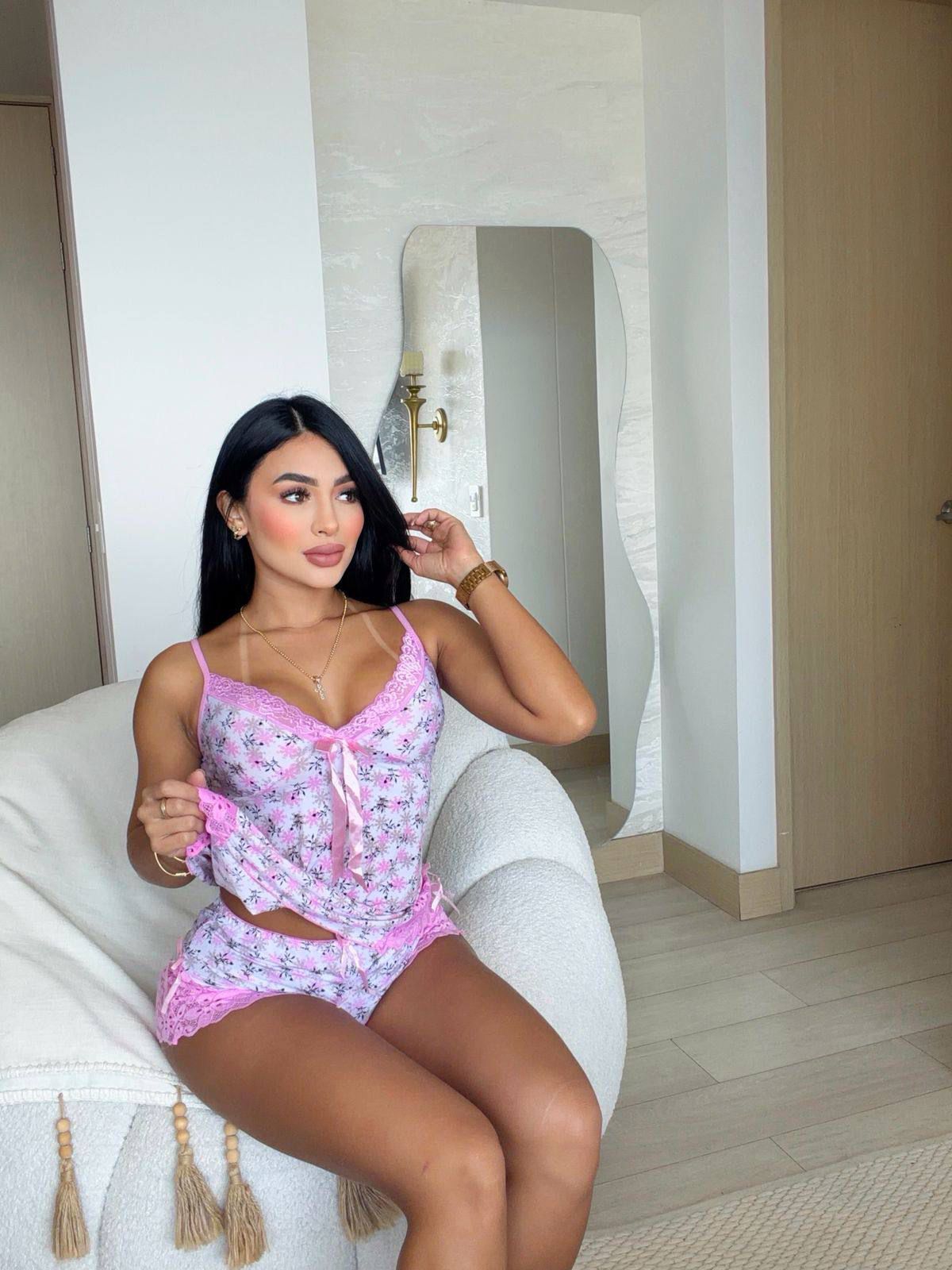 Un conjunto seductor y elegante para tus noches especiales. Tanto la blusa como el short están confeccionados en tela de seda fría, ofreciendo una sensación de lujo y frescura. Los adornos de encaje en el short añaden un toque de sensualidad adicional.